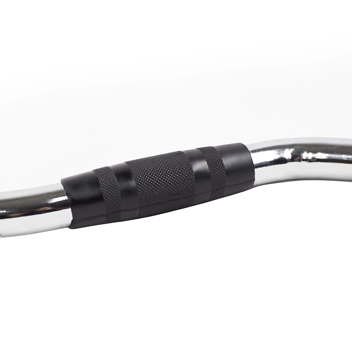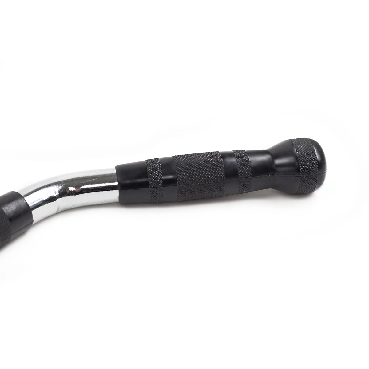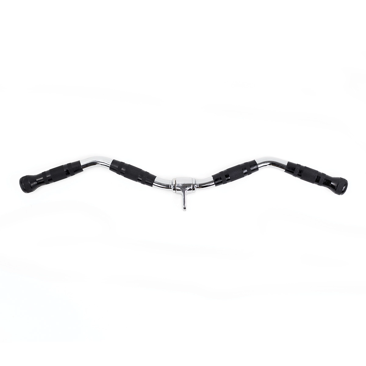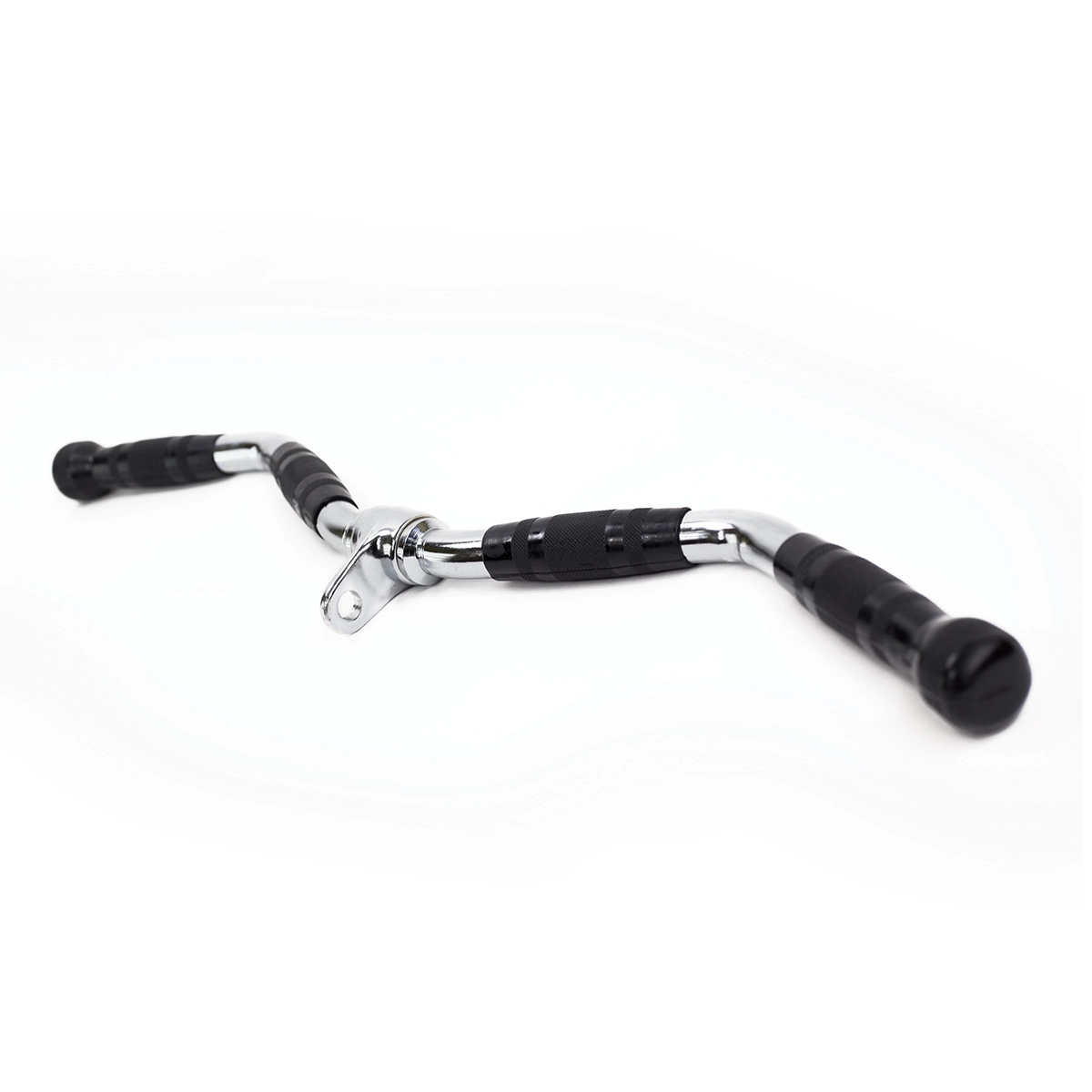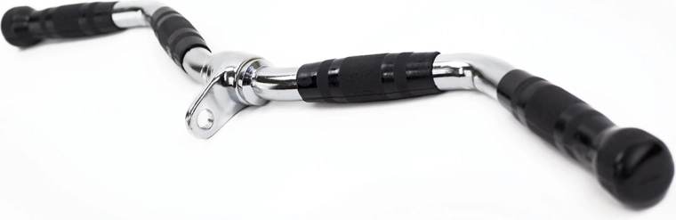 Ergonomicznie wyprofilowane wygięcie zmniejsza napięcie w nadgarstkach i umożliwia naturalną trajektorię ruchu. Wysokiej jakości metalowe wykonanie z obrotowym okiem zapewnia płynne podłączenie do większości wież treningowych i wyciągów linkowych. Idealna do siłowni domowych i klubowych, gdzie liczy się niezawodność, komfort i uniwersalność.
