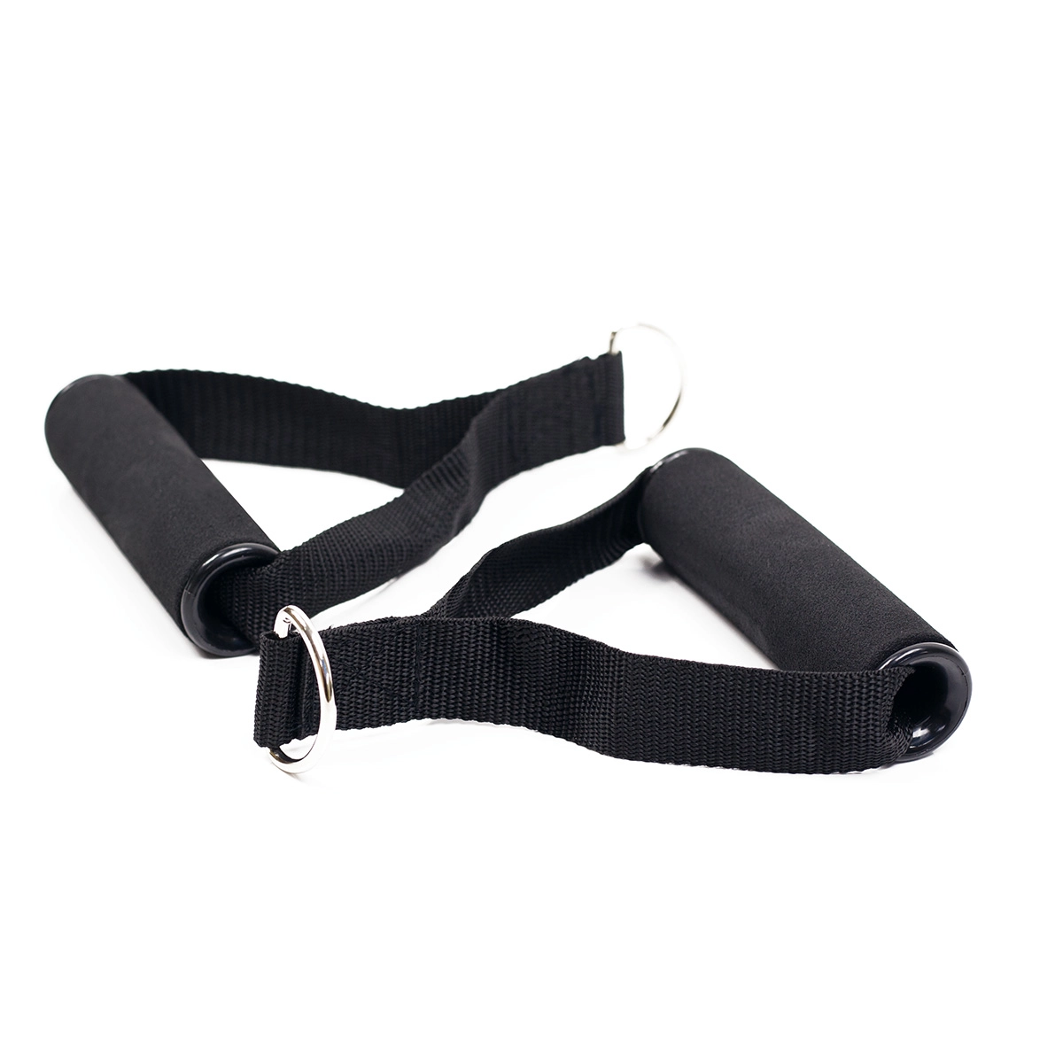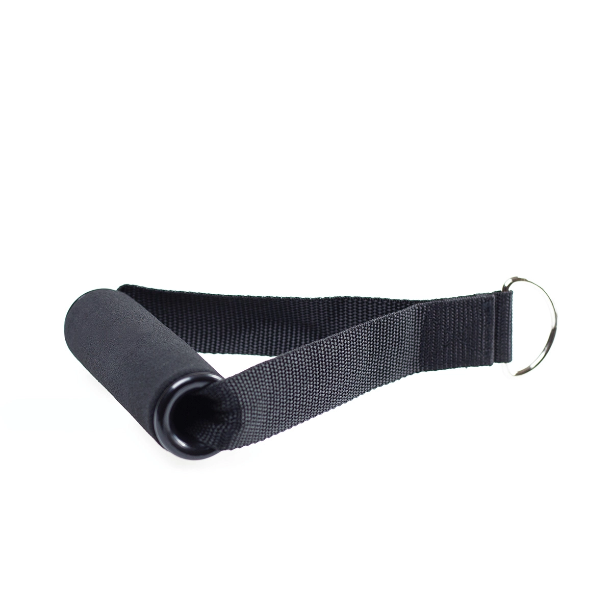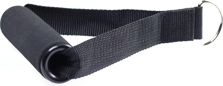 Mocna tkanina nylonowa i metalowe pierścienie zapewniają bezpieczne podłączenie do gum oporowych lub bloczków.