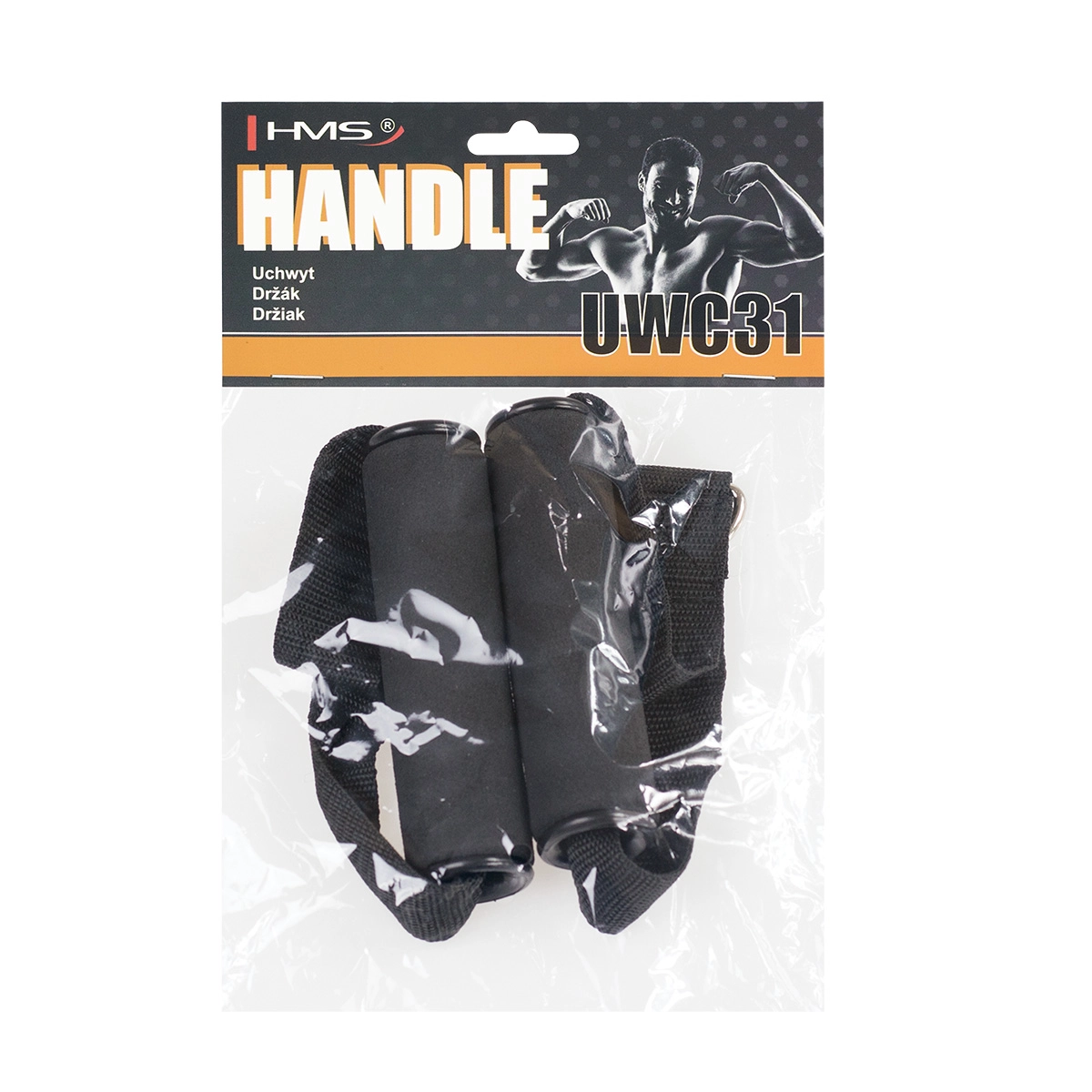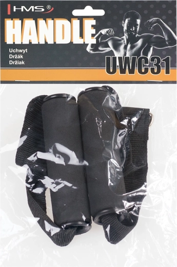 Uchwyty do gum HMS UW31 to uniwersalne akcesorium do gum oporowych i maszyn bloczkowych. Łączą antypoślizgowe piankowe rączki dla komfortu z mocnymi paskami i pierścieniami D dla szybkiego i bezpiecznego przypięcia do linek, karabińczyków lub gumowych ekspanderów. Idealne do przyciągań, wyciskań, rozpięć, uginania bicepsów oraz treningu pleców i barków.