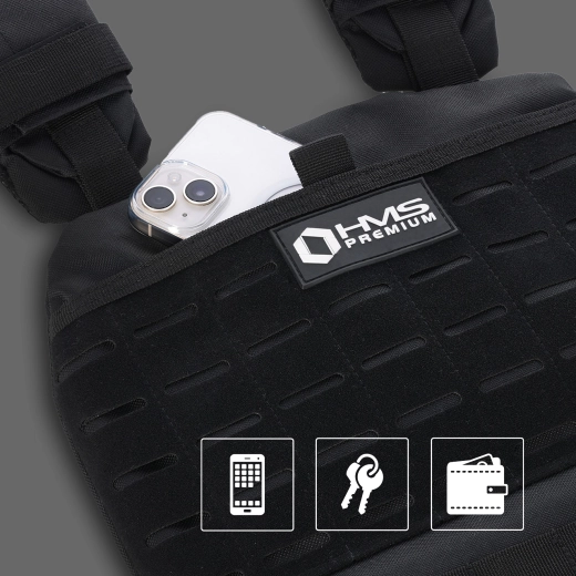 Praktyczna kieszeń utrzyma telefon lub drobiazgi pod ręką. Wybierz HMS i podnieś swoją wydajność – kamizelka to świetny wybór dla wszystkich poziomów zaawansowania, którzy chcą zwiększyć intensywność, wspierać siłę, wytrzymałość i eksplozywność.
