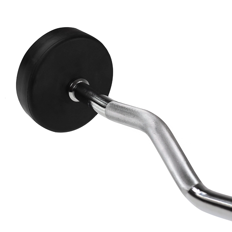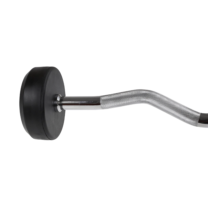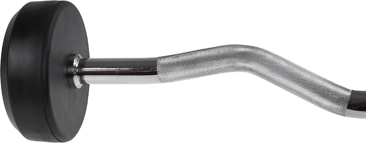 Wygięty gryf zapewnia naturalne kąty chwytu, zmniejsza obciążenie nadgarstków i zwiększa komfort podczas ćwiczeń na biceps i triceps.