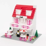Zbuduj własną cukiernię z klocków CHEVA z balkonem i zewnętrznym miejscem do siedzenia. Zestaw zawiera 215 elementów w praktycznym wiaderku, przejrzystą instrukcję oraz figurki kelnera i klientki. Idealny do kreatywnej zabawy i rozwoju wyobraźni dzieci od 6 lat.