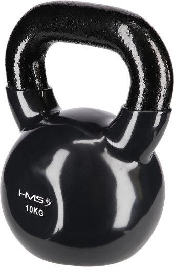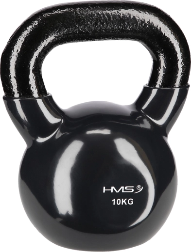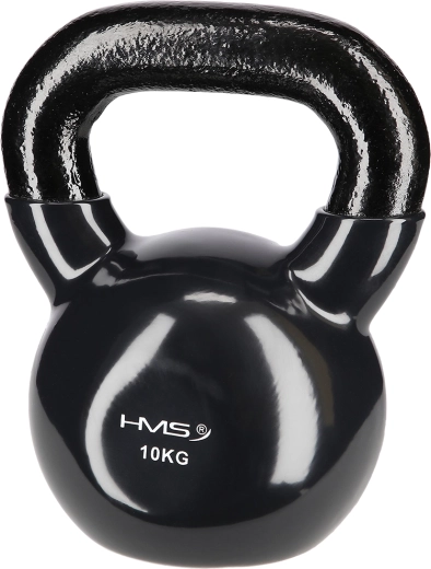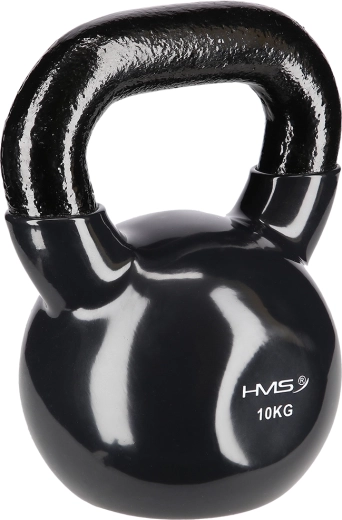 Kettlebell HMS o masie 10 kg wykonany jest z wytrzymałej stali z winylową powłoką, która chroni podłogę i tłumi hałas. Płaska podstawa utrzymuje odważnik stabilnie podczas odkładania i ułatwia przygotowanie do ćwiczeń. Teksturowany, szeroki uchwyt zapewnia pewny chwyt dla technicznego wykonania ruchów.