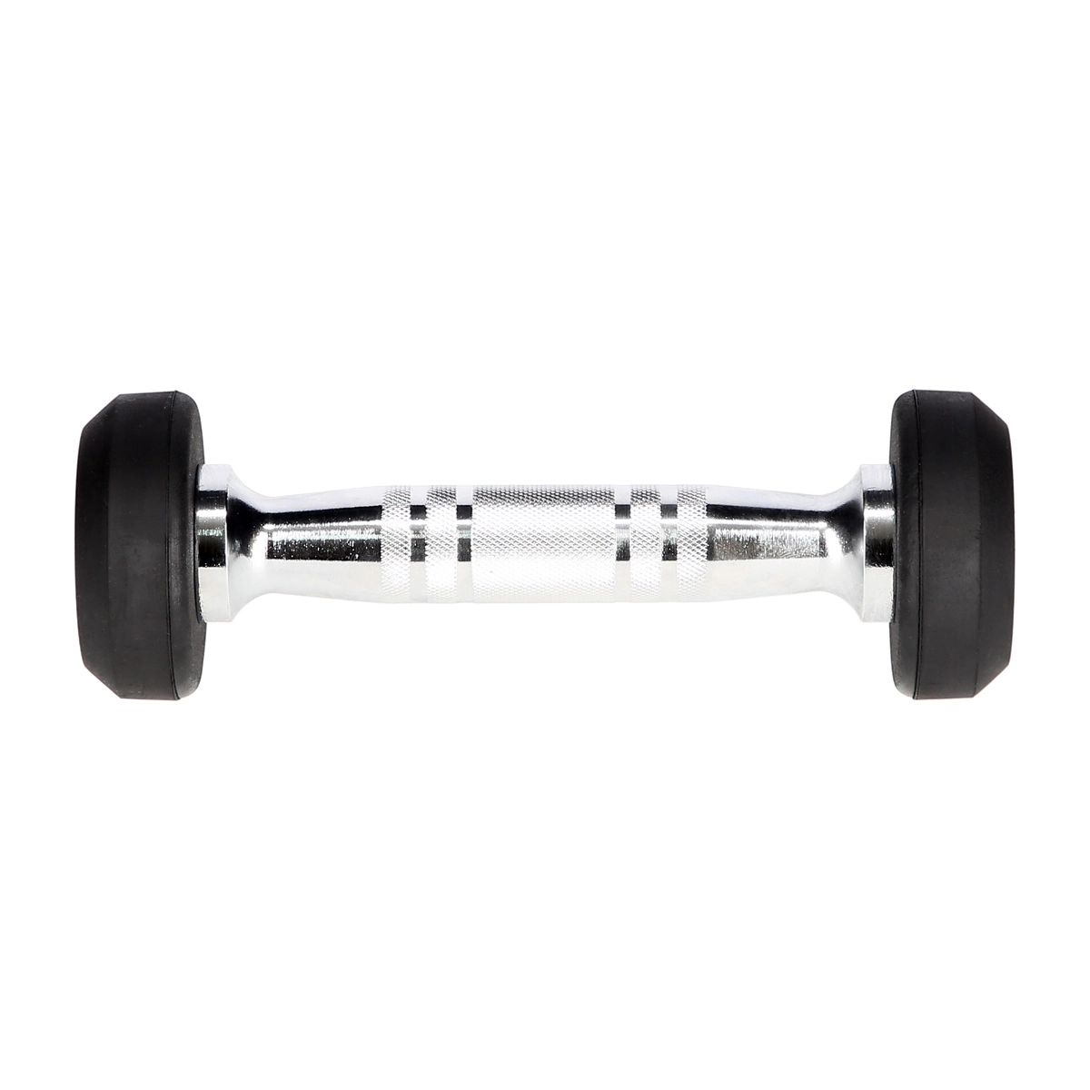 Ergonomiczna chromowana rękojeść o baryłkowatym profilu i radełkowaniu zapewnia bezpieczny, antypoślizgowy chwyt nawet podczas dłuższych serii. Hantla sprawdzi się w klubach fitness, hotelowych siłowniach i domowych gymach – jest trwała, cicha i łatwa w utrzymaniu.