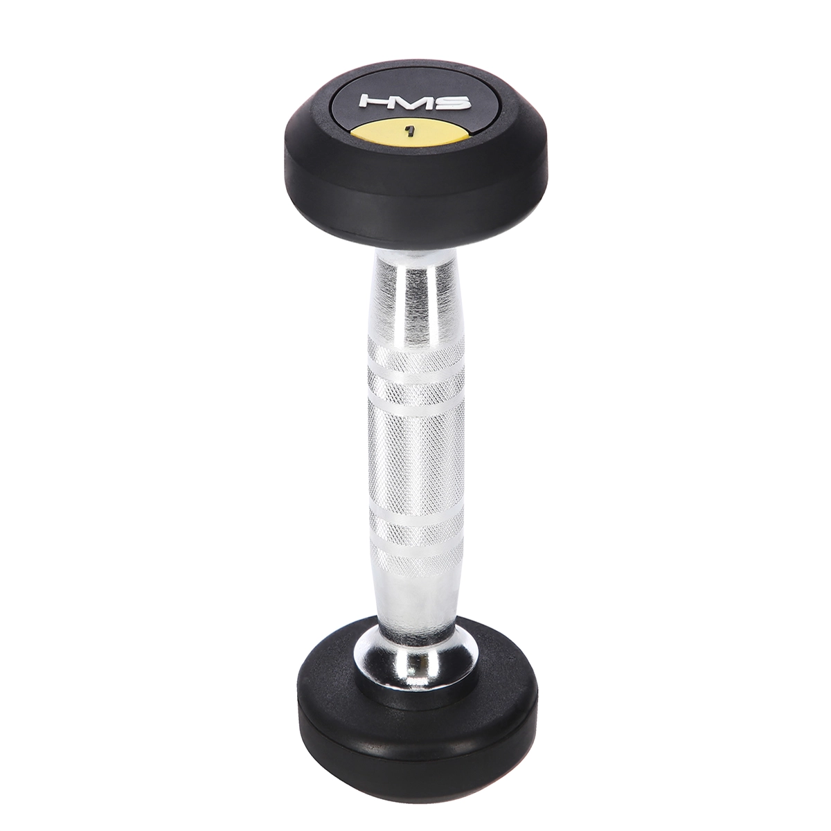 Hantla jednoręczna HMS HG Pro 1 kg idealnie sprawdza się do rozgrzewki, ćwiczeń rehabilitacyjnych oraz delikatnego wzmacniania ramion i barków. Dzięki żeliwnemu odlewowi z gumowanymi głowicami doskonale pochłania uderzenia, redukuje hałas i zwiększa trwałość. Na czole znajduje się czytelne oznaczenie wagi oraz logo HMS dla łatwej orientacji na stojaku.