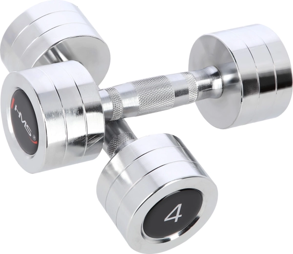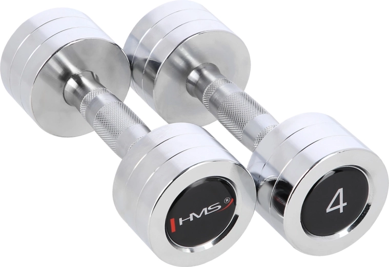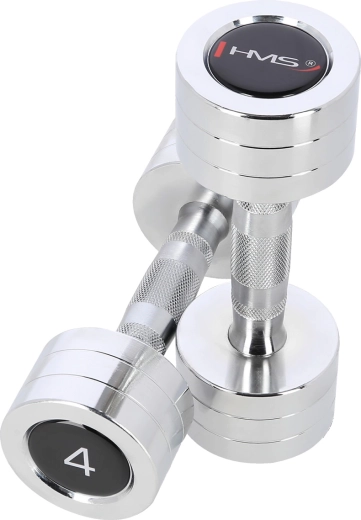Uniwersalny zestaw hantli jednoręcznych HMS 2 × 4 kg jest idealny do wzmacniania ramion, barków, klatki piersiowej oraz pleców. Korpusy hantli wykonane są z wysokiej jakości chromowanej stali, odpornej na zużycie i utlenianie. Radełkowany (krzyżowo nacinany) uchwyt zapewnia bezpieczny i pewny chwyt nawet podczas intensywnego treningu.