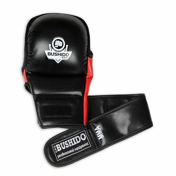 Wytrzymałe rękawice MMA DBX Bushido ARM-2011 z wysokiej jakości skóry syntetycznej do intensywnego treningu i sparingu. Oferują utwardzaną piankę PU dla skutecznej amortyzacji uderzeń, przedłużony pasek na rzep do podwójnego owinięcia i solidnej stabilizacji nadgarstka oraz prosty system wentylacji dla komfortu i higieny. Odpowiednie do MMA, Krav Maga, boksu i kickboxingu.