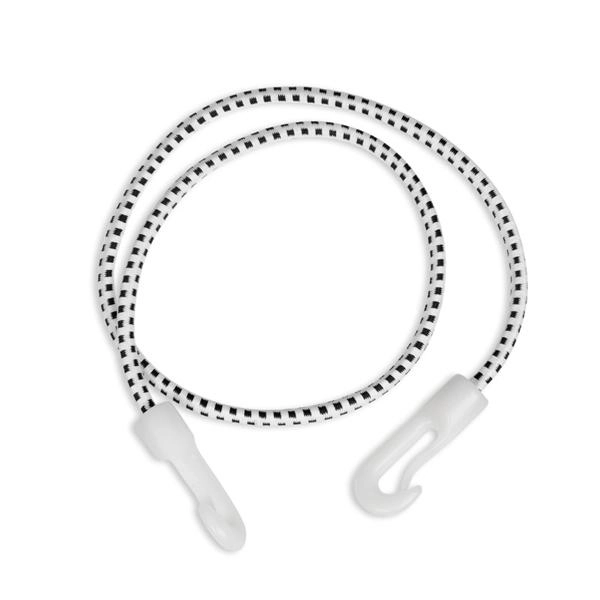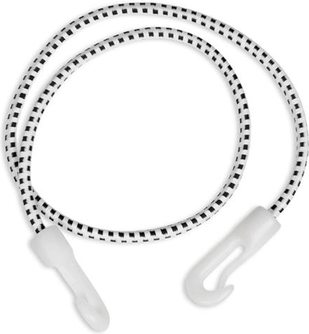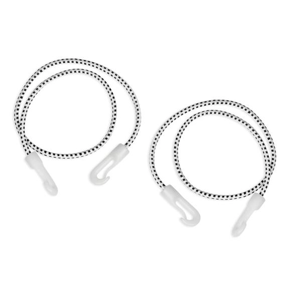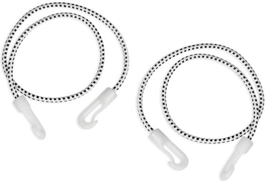 Dwie gumy montażowe z karabińczykami z twardego plastiku do szybkiego zakotwienia między podłogą a sufitem w pomieszczeniach o wysokości 180–300 cm.