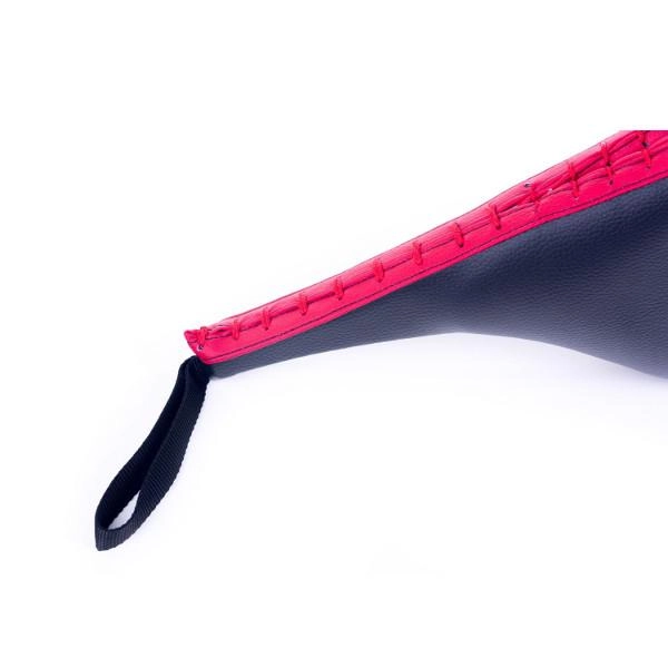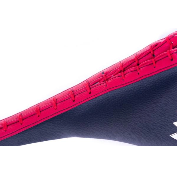 Dzięki praktycznej pętli i wygodnemu chwytowi łapa pozostaje stabilna nawet przy szybkich kombinacjach. Zakrzywiony, kroplowy kształt pomaga prowadzić kopnięcie we właściwe miejsce i zwiększa celność trafień.
