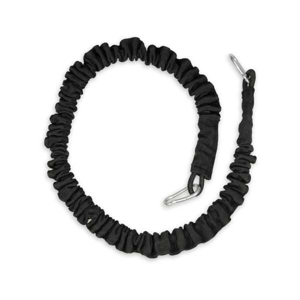 Wytrzymały tekstylny mankiet na gumie oporowej minimalizuje tarcie i wydłuża żywotność. Końcowe karabińczyki umożliwiają szybkie podpięcie do pasów treningowych lub „rękawic”, a paski na nadgarstki z zapięciem Velcro oraz pętla na kciuk zapobiegają zsuwaniu i pozwalają założyć rękawice bokserskie dla pełnowartościowego treningu.