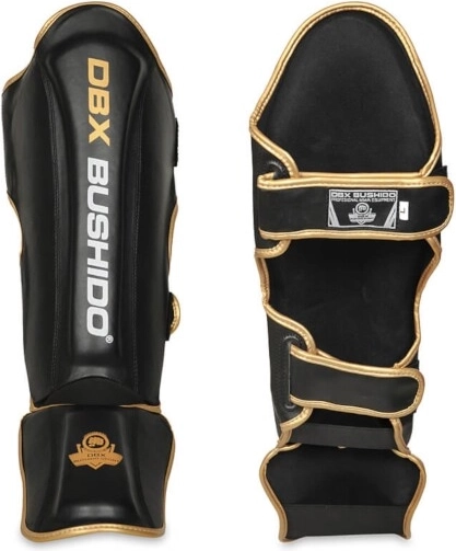 Profesjonalne ochraniacze piszczeli i śródstopia DBX BUSHIDO w eleganckiej czarno‑złotej wersji zapewniają niezawodną ochronę podczas treningu i sparingu. Wytrzymała skóra syntetyczna, utwardzona pianka PUR pochłaniająca uderzenia oraz szerokie, mocne paski gwarantują stabilność, wygodę i długą żywotność.