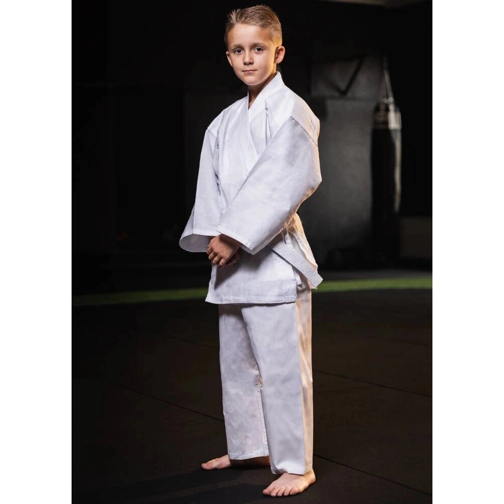 Spodnie z gumą i sznurkiem nie zsuwają się i łatwo dopasowują do sylwetki. W zestawie znajduje się biały pas (210 cm), więc mały karateka może wyruszyć na pierwszy trening zaraz po rozpakowaniu. Kimono jest idealne dla dzieci i młodzieży rozpoczynających przygodę z karate – łączy wygodę, funkcjonalność i niezawodność.