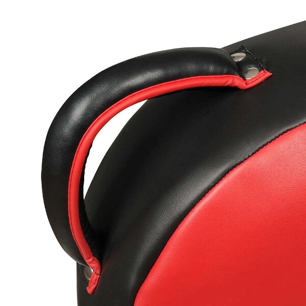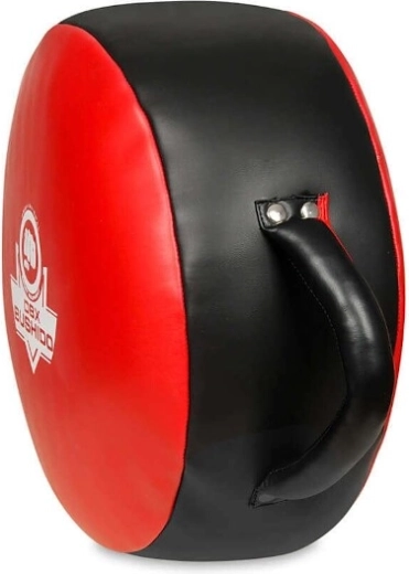 Dzięki grubości 20 cm tarcza doskonale tłumi uderzenia i zmniejsza ryzyko urazu osoby trzymającej. Czarno‑czerwone wykończenie jest łatwe w utrzymaniu i odporne na pot oraz częste użytkowanie. Świetne rozwiązanie dla klubów, domowej siłowni i treningu indywidualnego.