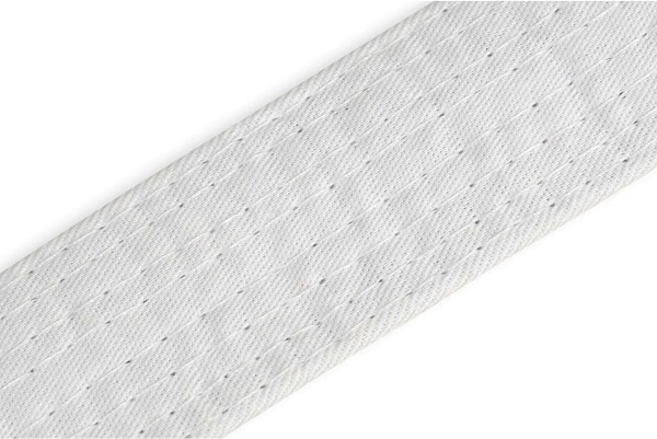 Wysokiej jakości biały pas do kimona DBX Bushido OBI dla początkujących i na stopień 8. KYU. Wykonany z wytrzymałej mieszanki materiałów, ma szerokość 4 cm, jest podszyty 8× dla większej trwałości i dostępny w długościach 240, 260 i 280 cm.