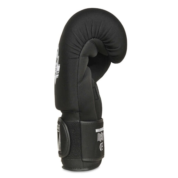 Trwały materiał neoprenowy jest łatwy w utrzymaniu, przyjemny w dotyku i wraz z mocną podszewką zwiększa odporność na rozdarcia. Specjalna pianka PU z pamięcią w części grzbietowej doskonale tłumi uderzenia podczas pracy na worku, tarczach i w trakcie sparingów. Szeroki pasek na rzep stabilizuje nadgarstek, a połączony kciuk zmniejsza ryzyko urazu.