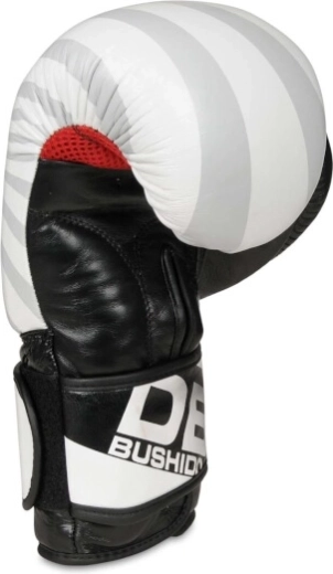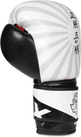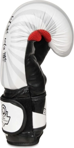 Szeroki mankiet na rzep stabilizuje nadgarstek i zmniejsza ryzyko kontuzji, a kciuk jest bezpiecznie połączony paskiem z resztą rękawicy. Design „Japan” wyróżnia się białą bazą z szarymi promieniami oraz napisem w kanji – styl, który przyciąga wzrok w ringu i na sali treningowej. Każda para jest ręcznie szyta i testowana we współpracy z trenerami boksu zgodnie z normami bezpieczeństwa, aby sprostać wymaganiom regularnych i intensywnych treningów.