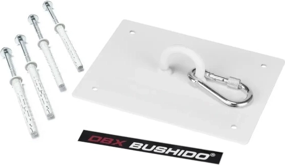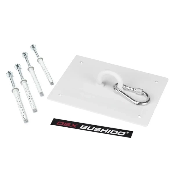Solidny sufitowy uchwyt DBX BUSHIDO do worków bokserskich o udźwigu do 150 kg. Dzięki wzmocnionej stali o grubości 3 mm, szerokiemu rozstawowi śrub oraz dołączonemu zestawowi montażowemu XL zapewnia stabilne, bezpieczne i długotrwałe mocowanie nawet podczas ciężkich treningów.