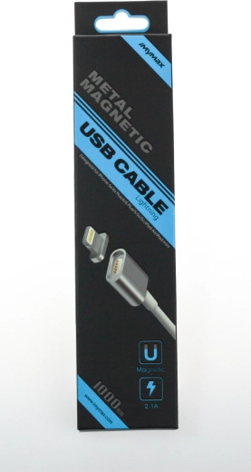 Praktyczny i wytrzymały magnetyczny kabel MyMax Lightning w kolorze srebrnym do szybkiego ładowania i synchronizacji urządzeń Apple. Obsługuje szybkie ładowanie 2,1 A, posiada aluminiowe złącza i długość 1 m, co zapewnia wygodne użytkowanie w domu i w podróży.