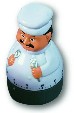 Uroczy kuchenny minutnik TFA w kształcie kucharza precyzyjnie odmierza czas gotowania do 60 minut. Po upływie ustawionego czasu rozlega się klasyczny dzwonek. Bez baterii, łatwy w użyciu i stylowy dodatek do każdej kuchni.