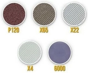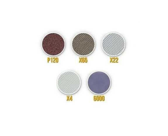 - Szeroki zakres gradacji: P120 do szybkiego wyrównania krawędzi, X65 i X22 do kształtowania, X4 do wstępnego polerowania, P6000 do finalnego polerowania.