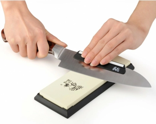 Dzięki materiałowi z wysokiej jakości korundu (tlenku glinu) kamień jest odporny, równomiernie ściera i utrzymuje stabilną wydajność. Antypoślizgowa gumowa podstawka zapewnia bezpieczną pracę zarówno na blacie kuchennym, jak i w warsztacie. Kamień jest uniwersalny – można go używać z wodą lub olejem, a dla wygody przechowywać długoterminowo zanurzony w wodzie.