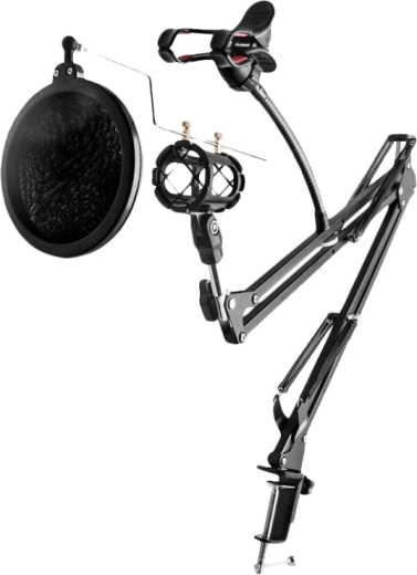 - Regulowany kąt nachylenia 180° – precyzyjne ustawienie pozycji mikrofonu i tabletu.