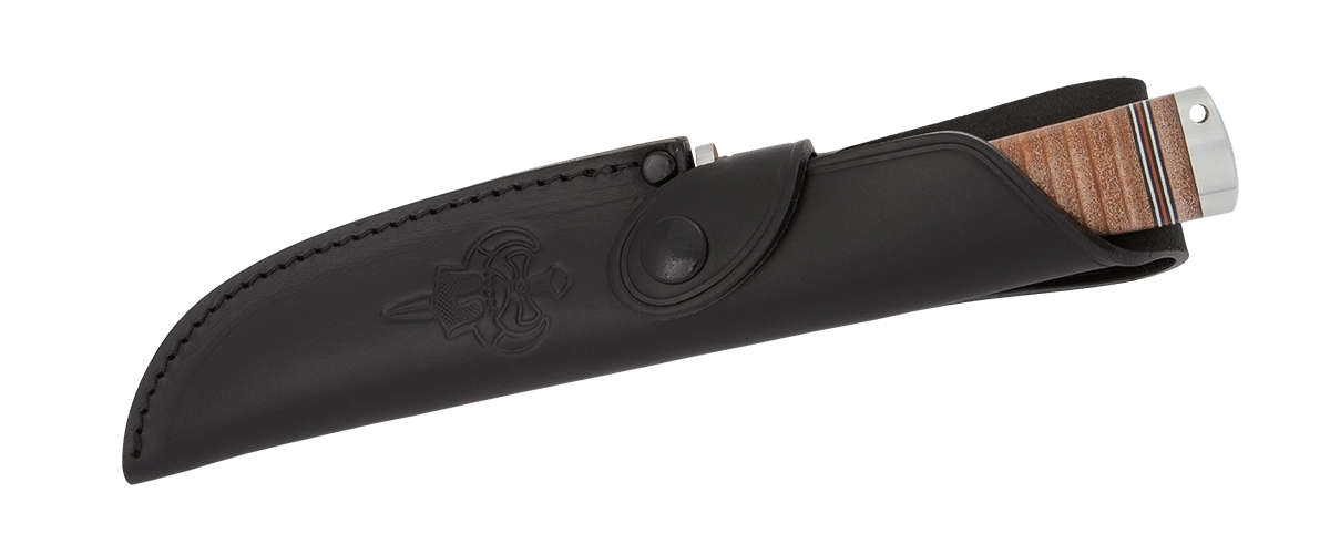 Podwójna wewnętrzna wkładka zwiększa bezpieczeństwo i chroni zarówno ostrze noża, jak i samo etui przed przecięciem. Praktyczna konstrukcja umożliwia wygodne mocowanie do pasa i stabilną fiksację noża.