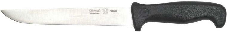 Ergonomicznie ukształtowana rękojeść z wytrzymałego czarnego tworzywa dobrze leży w dłoni, zwiększa komfort i kontrolę nad nożem nawet przy dłuższym krojeniu. Nóż jest certyfikowany do kontaktu z żywnością zgodnie z normami UE i został wyprodukowany z dbałością o jakość w Czechach.