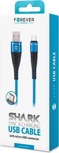 Kabel Forever Shark Blue to idealny wybór do codziennego ładowania i synchronizacji urządzeń ze złączem micro USB. Dzięki natężeniu do 2 A zapewnia szybkie i bezpieczne uzupełnianie energii, a wysokiej jakości wykonanie gwarantuje niezawodny transfer danych bez przerw.