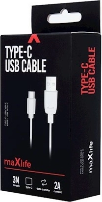 Kabel Maxlife USB‑C to niezawodne rozwiązanie do codziennego ładowania i przesyłania plików. Z prądem do 2 A sprawnie dostarcza energię nowszym modelom telefonów i innym urządzeniom z USB‑C. Ekstra długa długość 3 m daje swobodę podłączenia urządzenia także tam, gdzie gniazdko jest dalej.