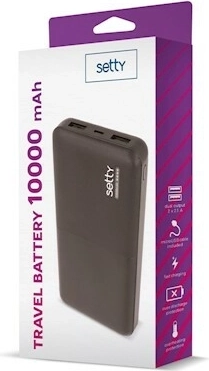 Kompaktowa i niezawodna powerbank Setty 10000 mAh w czarnym kolorze zapewni, że Twój telefon, tablet czy odtwarzacz będą zawsze naładowane. Oferuje dwa wyjścia USB do jednoczesnego ładowania kilku urządzeń, wejście micro USB oraz stabilną moc 5 V z prądem do 2,4 A dla szybszego ładowania.
