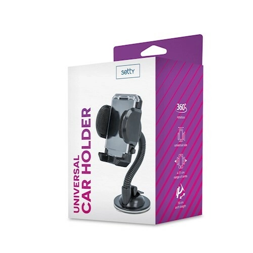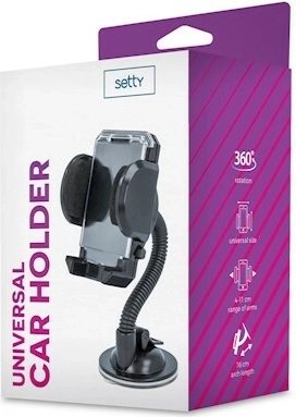 Setty elastyczny uniwersalny uchwyt samochodowy na przednią szybę, czarny