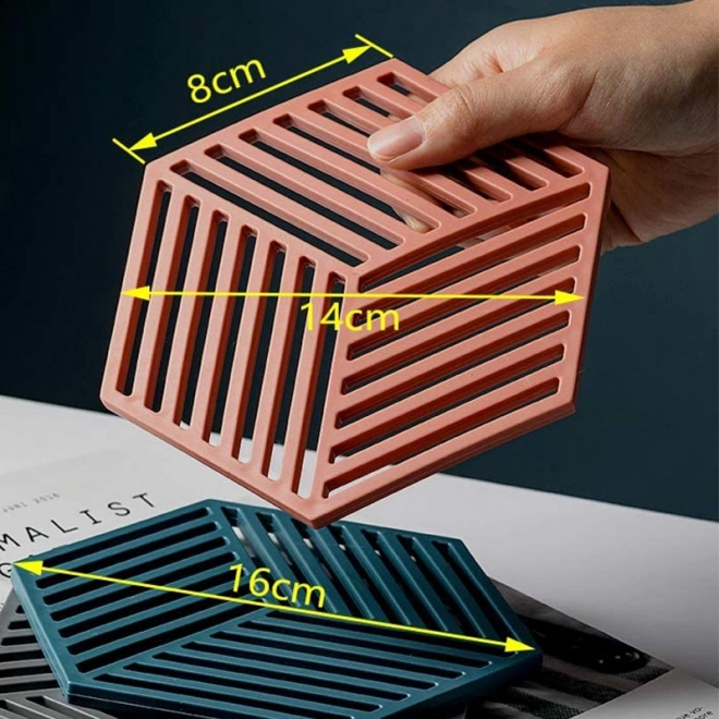 Podkładka nadaje się pod garnki, czajniki i patelnie. Dzięki podwyższonemu reliefowi ciepło lepiej się rozprasza, a naczynia pozostają stabilne. Materiał łatwo się opłukuje, nie pochłania zapachów i jest gotowy do natychmiastowego ponownego użycia.