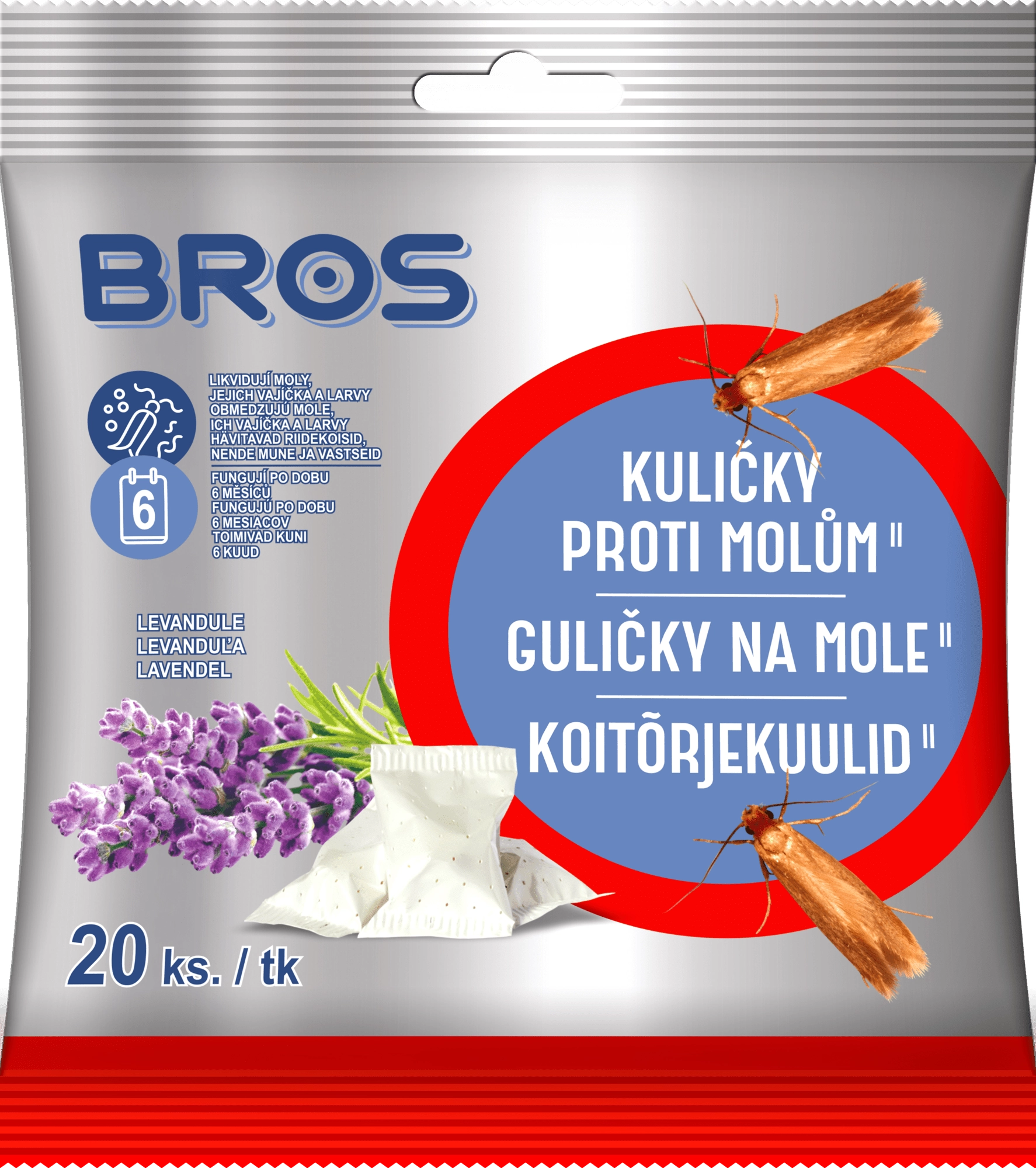 Utrzymaj swoją szafę świeżą i wolną od moli. Sprawdzone kulki BROS o zapachu lawendy skutecznie odstraszają mole odzieżowe, a jednocześnie nadają przyjemny zapach przechowywanej odzieży. Dzięki długotrwałemu działaniu do 6 miesięcy stanowią wygodne i ekonomiczne rozwiązanie ochrony tekstyliów.
