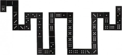 Praktyczne pudełko 21 × 6 × 3 cm pozwala zabrać domino wszędzie i mieć wszystko przejrzyście uporządkowane.