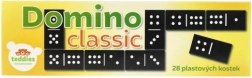 Odkryj ponadczasową zabawę z klasycznym domino w solidnym, plastikowym wydaniu. Zestaw zawiera 28 kamieni z wyraźnymi kropkami dla łatwego układania i przejrzystej gry. Kompaktowe pudełko umożliwia zabranie domina wszędzie – na wakacje, do dziadków i w podróż.