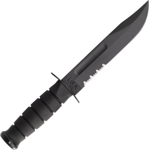 Ten uniwersalny taktyczny nóż KA-BAR bazuje na sprawdzonej wojskowej klasyce i jest świetnym wyborem do zastosowań bojowych, biwakowania i bushcraftu. Głownia ze stali 1095 Cro-Van z czarną powłoką jest odporna na korozję i odblaski, a częściowo ząbkowane ostrze z łatwością radzi sobie z linami, pasami i sznurami.