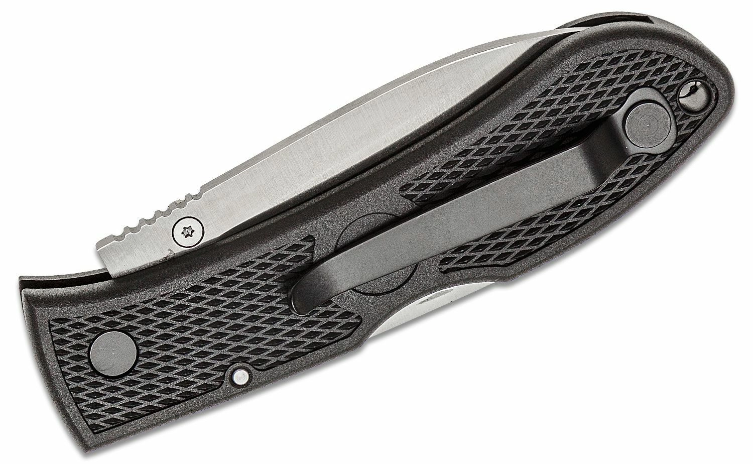 Rękojeść z Zytelu w czarnym kolorze ma przyjemną, antypoślizgową fakturę dla pewnego chwytu nawet w trudniejszych warunkach. Dwustronnie przekładalny klips umożliwia dyskretne noszenie w kieszeni, a otwór na linkę zwiększa możliwości mocowania i zabezpieczenia.