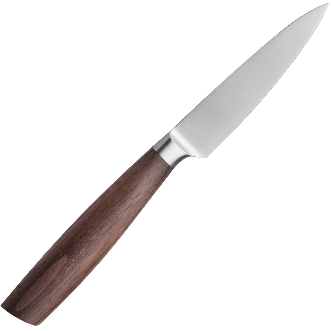 Ostrze ze sprawdzonej niemieckiej stali X50CrMoV15 jest odporne na korozję, długo utrzymuje ostrość i jest łatwe w pielęgnacji. Naturalnie wyprofilowana rękojeść z drewna orzechowego zapewnia komfortowy i pewny chwyt, który docenią zarówno domowi kucharze, jak i wymagający użytkownicy.