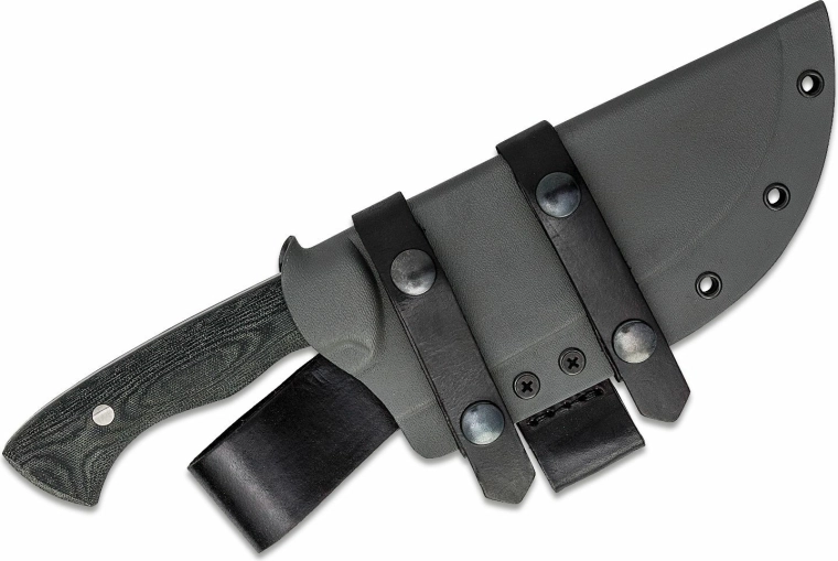 Ergonomicznie ukształtowana rękojeść z Micarty w szarym kolorze gwarantuje pewny i wygodny chwyt nawet w wymagających warunkach. W zestawie znajduje się pochwa łączona z kydexu i skóry dla bezpiecznego noszenia i szybkiego dostępu w terenie. Aby zachować właściwości stali węglowej, zalecamy po użyciu osuszyć ostrze i od czasu do czasu zabezpieczyć olejem.