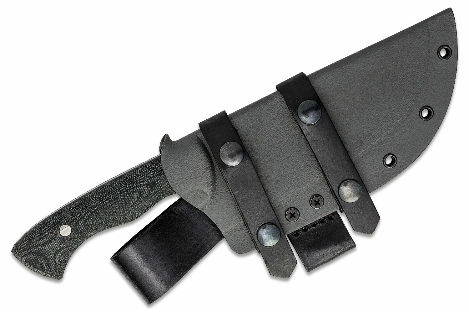 • Trwała konstrukcja – stal 1095, Micarta, kydex + skóra.