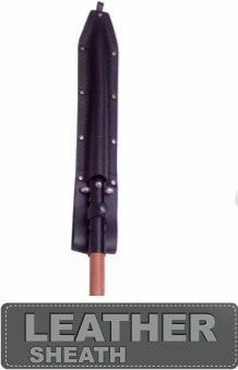 Drewniany uchwyt z twardego drewna tropikalnego jest gładko wykończony dla pewnego i wygodnego chwytu. W zestawie znajduje się ręcznie szyte skórzane etui, które ułatwia bezpieczne przenoszenie oraz przechowywanie narzędzia w obozie lub warsztacie.