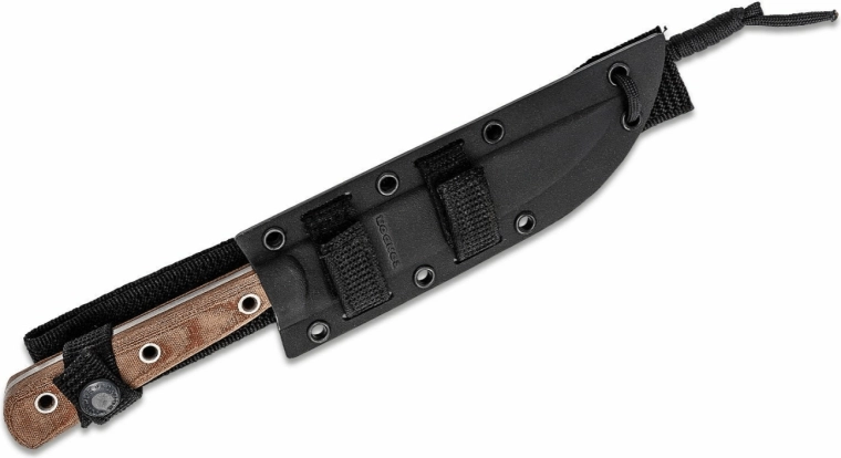 W zestawie znajduje się łączona pochwa z nylonu i kydexu z systemem MOLLE z tyłu, umożliwiającym elastyczne mocowanie do oporządzenia. Nóż idealnie sprawdzi się w zastosowaniach taktycznych, podczas survivalu w terenie, biwakowania oraz w codziennych zadaniach outdoorowych.