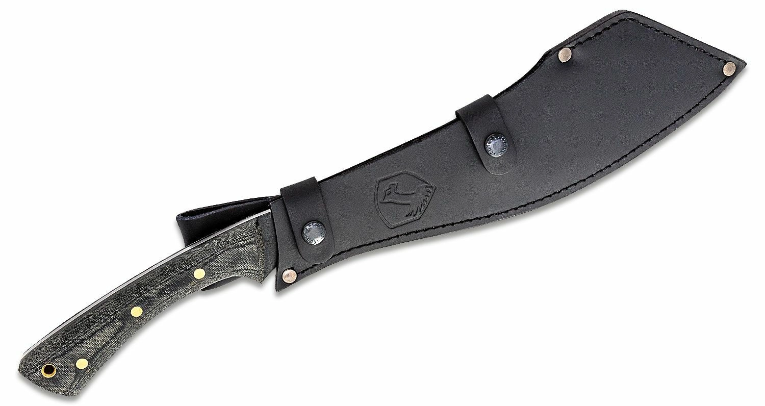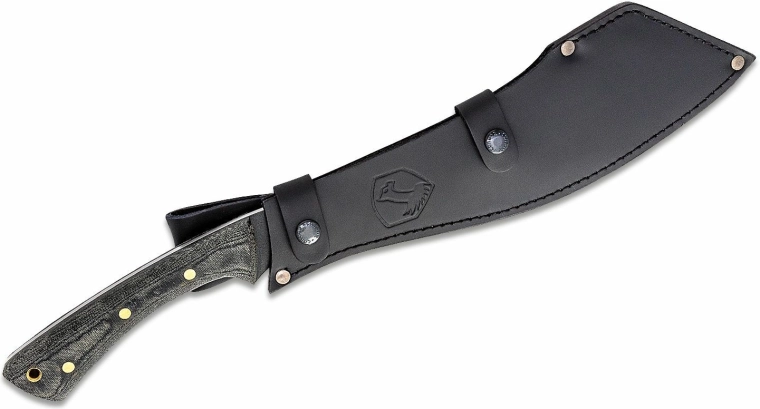 Ostrze z wysęgowęglowej stali 1075 z epoksydową powłoką proszkową dobrze opiera się korozji i ścieraniu, a także łatwo je ponownie naostrzyć. Ergonomiczny uchwyt z Micarty z delikatną fakturą zapewnia pewny chwyt nawet w rękawicach lub na mokro. W zestawie znajduje się wysokiej jakości skórzana pochwa do bezpiecznego noszenia.
