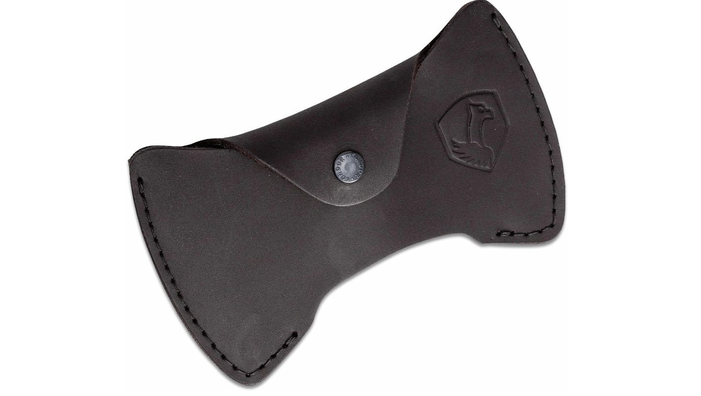 Trzonek z amerykańskiego orzesznika hikory z poszerzeniem na końcu zapewnia pewny chwyt i lepszą kontrolę nad uderzeniem. Praktyczny otwór w rękojeści umożliwia przewleczenie linki do zawieszenia lub zabezpieczenia. Dołączone ręcznie wykonane skórzane etui chroni krawędź tnącą podczas przechowywania i transportu.