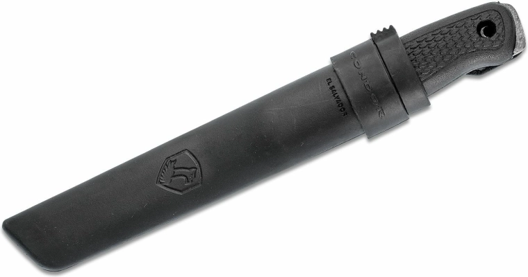 Ergonomiczna rękojeść z polipropylenu w czarnym kolorze świetnie leży w dłoni, a na końcu ma otwór do przewleczenia linki lub pętli. W zestawie znajduje się polipropylenowa pochwa kompatybilna z modelem Bushglider, którą można nosić po prawej i lewej stronie – idealna do codziennego noszenia w terenie.