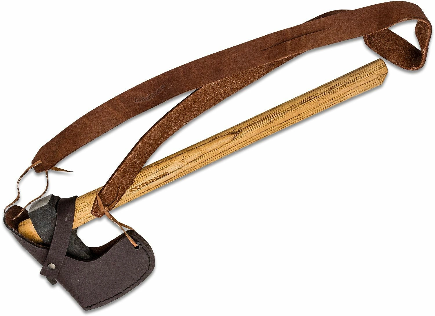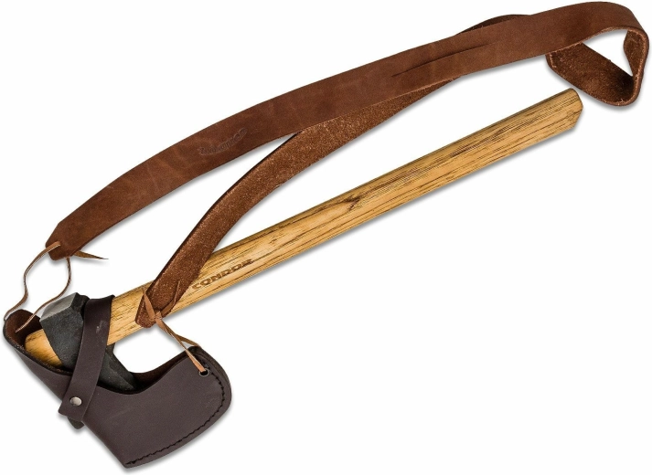 Rękojeść z amerykańskiego orzecha hickory słynie ze swojej sprężystości i trwałości. Jest wymienna, więc w razie potrzeby możesz łatwo założyć nową lub wykonać własną według preferencji. W zestawie znajduje się eleganckie skórzane etui z paskiem na ramię do bezpiecznego przechowywania i wygodnego noszenia.