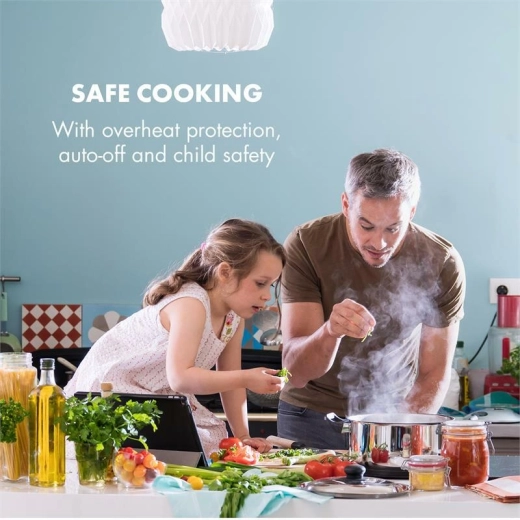 O bezpieczeństwo i oszczędność dbają inteligentne funkcje: EcoThermal Control wykorzystuje ciepło resztkowe, zabezpieczenie przed przegrzaniem z automatycznym wyłączeniem kontroluje pracę urządzenia, a blokada rodzicielska zapobiega niechcianym zmianom ustawień. Elegancka powierzchnia szkloceramiczna łatwo się czyści i doskonale pasuje do każdej kuchni.