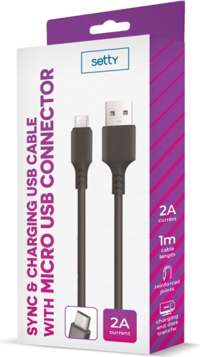 Niezawodny kabel Setty USB–microUSB został zaprojektowany do codziennego ładowania i synchronizacji. Obsługuje prąd do 2 A, dzięki czemu Twoje urządzenia uzupełnią energię szybko i bezpiecznie. Dzięki uniwersalnemu złączu microUSB jest kompatybilny z szeroką gamą smartfonów, tabletów, powerbanków i innych urządzeń.