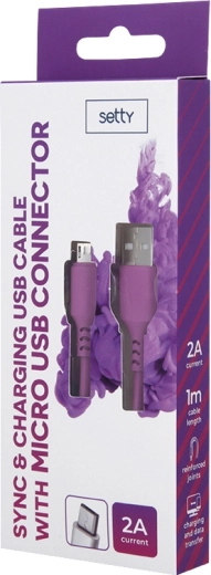 Wysokiej jakości kabel USB–microUSB marki Setty do szybkiego ładowania i niezawodnej transmisji danych. Dzięki natężeniu do 2 A bez problemu naładuje smartfony i tablety, a długość 1 m sprawia, że jest idealny do codziennego użytku w domu i w biurze.